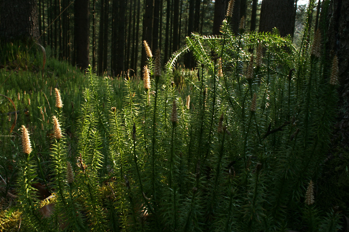 Also ein Glockenschuppling ist das – mit dieser Gattung hatte ich bisher noch nichts zu tun. Zur Ehrenrettung war ich mit Samthäubchen immerhin sehr dicht dran ;-). Eigentlich hätte ich mir denken können, dass die Hüte für eine (echte) Conocybe zu weit aufgeschirmt sind. Gibt es (echte) Conocybe mit Velumflöckchen am Hutrand? Oder ist das ein Trennmerkmal zu Pholiotina? Was nun die Art-Frage betrifft, so werde ich wohl oder übel die Cheilos anschauen müssen. Meine 3 Frk. habe ich gerade zum Trocknen gelegt... dann geht es erst in der Karwoche weiter, wenn ich wieder zuhause bin. Nachdem, was ich im Netz über Ph. vestita gesehen habe, sollte der Behangene Glockenschüppling schon recht struppig sein (siehe insbesondere das Bild bei pilze-deutschland?!). Deswegen tendiere ich im Moment eher zu Ph. brunnea, dem Zwitter-Glockenschüppling. Bei den Beschreibungen der jeweiligen Standorte hatte ich mir Aufschluss erwartet, nachdem mein Fund ja auf dieser ausgesprochen nährstoffhaltigen "Miste" (Brennnesseln) wächst?! Weiß jemand, ob die Hygrophanität ein Trennmerkmal zwischen diesen beiden Arten ist? Viele Grüße – Rika P.S.. Als Dankeschön noch ein OffTopic-Bild vom derzeit "blühenden" Bärlapp – es gab ja trotz fehlender Pilze viel zu sehen...