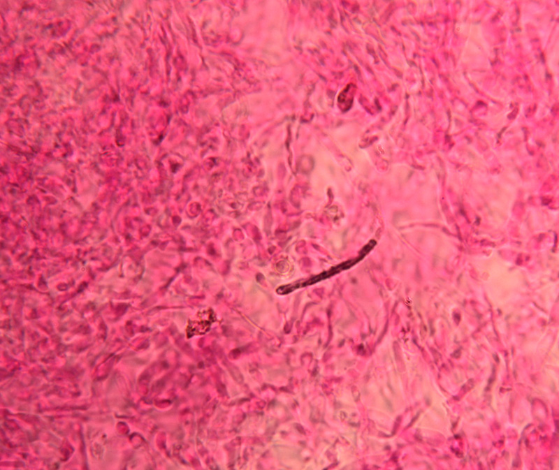 Dermatozystiden habe ich nur wenige gefunden, aber das passt ja auch zu R.curtipes. Anhängend ein Foto mit einer DZ mit SV angefärbt.