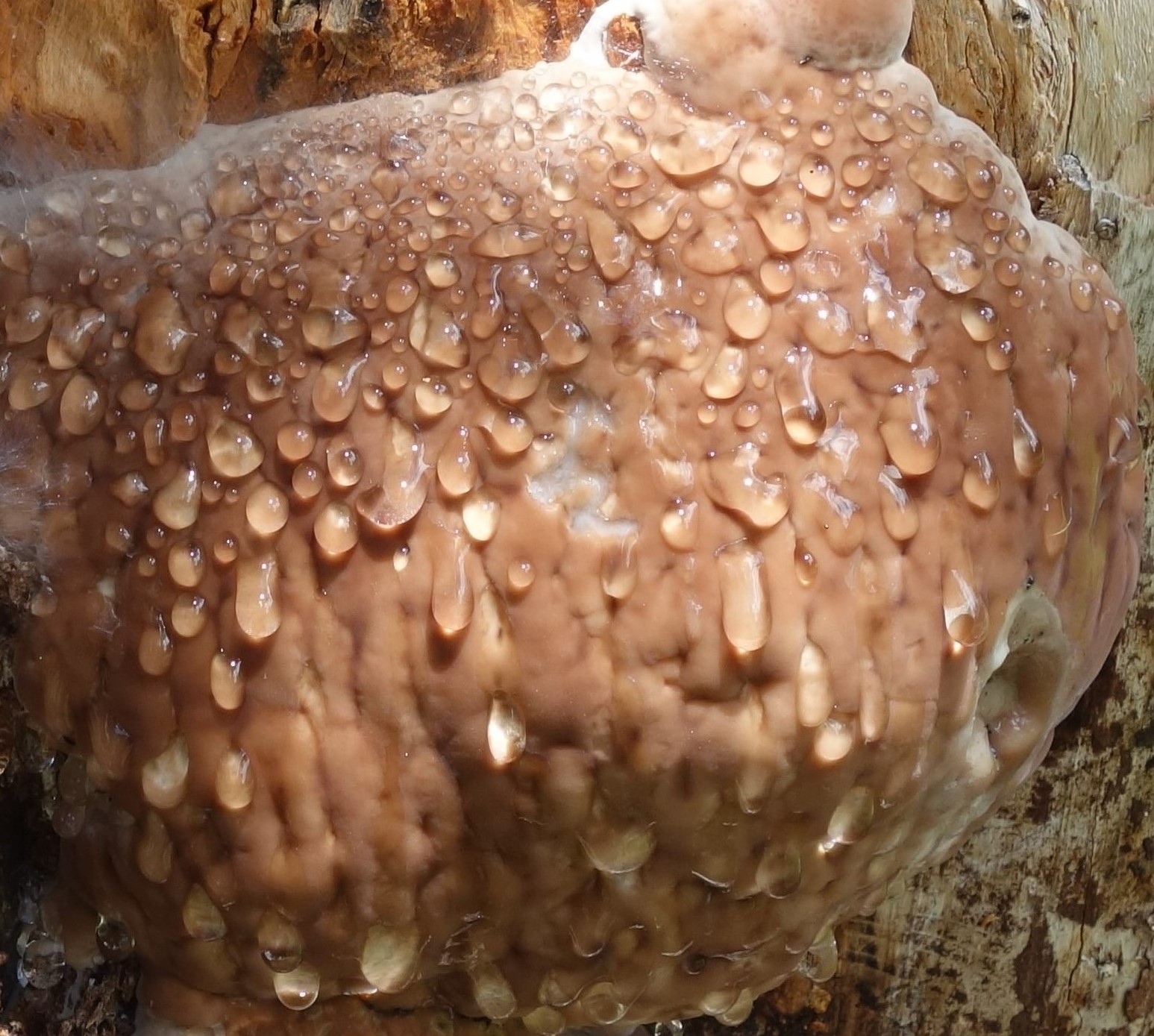 Liebe Pilzfreunde, dieser heutige Fund aus dem Vorarlberger Urlaubsaufenthalt bereitet mir Kopfzerbrechen- ein bräunlicher, Guttationstropfen ausscheidender Porling an einem alten Fichtenstamm; Fundort oberes Lechtal nahe Älpele auf ca. 1600 m Höhe. Ich hoffe bzw. bin mir sicher, es gibt hier Experten, die sich wesentlich besser mit Porlingen auskennen als ich.