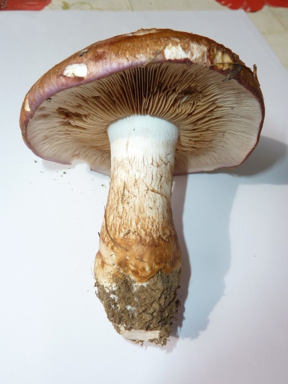 halo, ich hoffe dieser Erstfund ist die Eule.Ein Exemplar im nassen Gras auf Laubwald Weg.Hut 8cm,leicht schleimig,gekerbter Rand eingerollt,braun,lila Stellen am Rand,einige weiße Velumreste auf Hut.Lamellen mit leichtem Lilaton.Fleisch bleibend weiß,mit geringem,angenehmen Geruch.