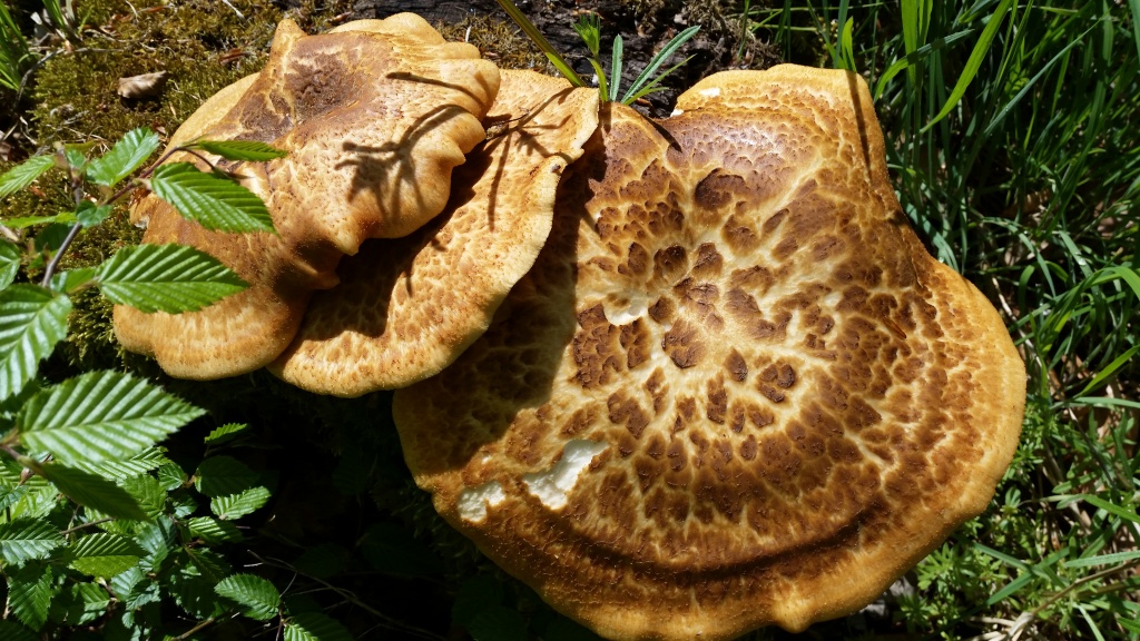 An einem Buchenstubben sehr stattliche ( der größte Hut ca. 25cm ) Schuppige Porlinge / Polyporus squamosus Gruß