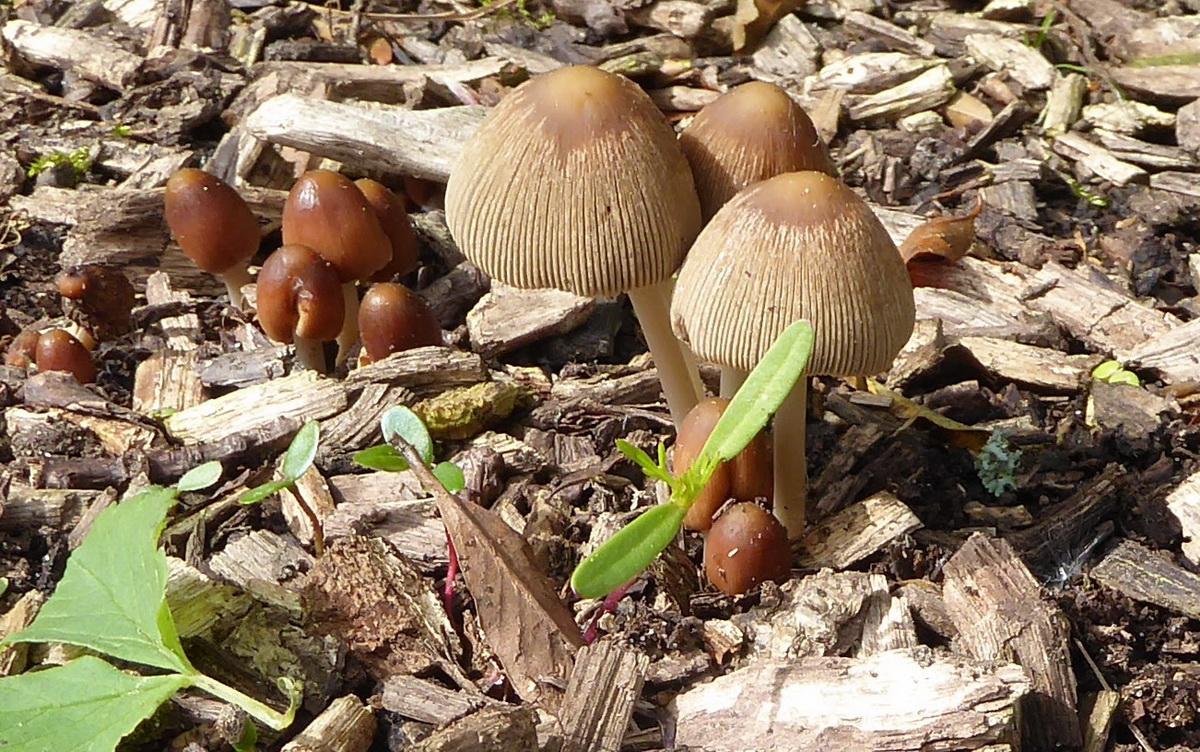 Die ersten Blätterpilze kommen raus: Außer Mai-Rittterlingen finden sich "Braunhaarige Tintlinge", mit neuem Namen Parasola auricoma. Dies sind sicher nicht die einzigen!