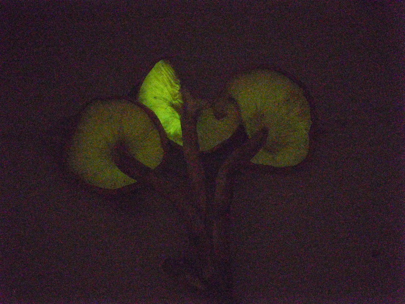 Das Leuchten der Lamellen war in unserer Vorratskammer gut zu sehen. Zwei Tage später auch noch, wenn auch schwächer. Rubbeln an den Lamellen brachte mehr Licht.