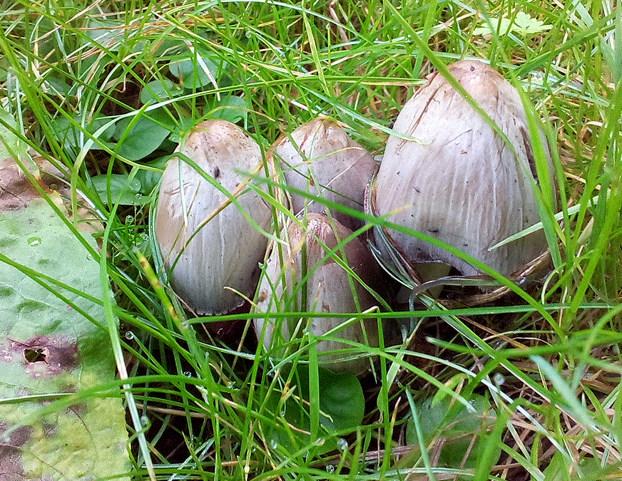Dort machte ich dann auch den ersten,vielleicht etwas unspektakulären Fund des Tages, den ich mal als Grauen Falten-Tintling (Coprinus atramentarius) ansprechen würde.