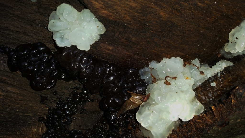 Am Holz kann man jetzt eine wahre Explosion von Pilzen entdecken und ich merk mal wieder, daß ich ohne Mikroskop total hilflos bin. Trotzdem begeistert mich diese Vielfalt. Wagt jemand eine Aussage?