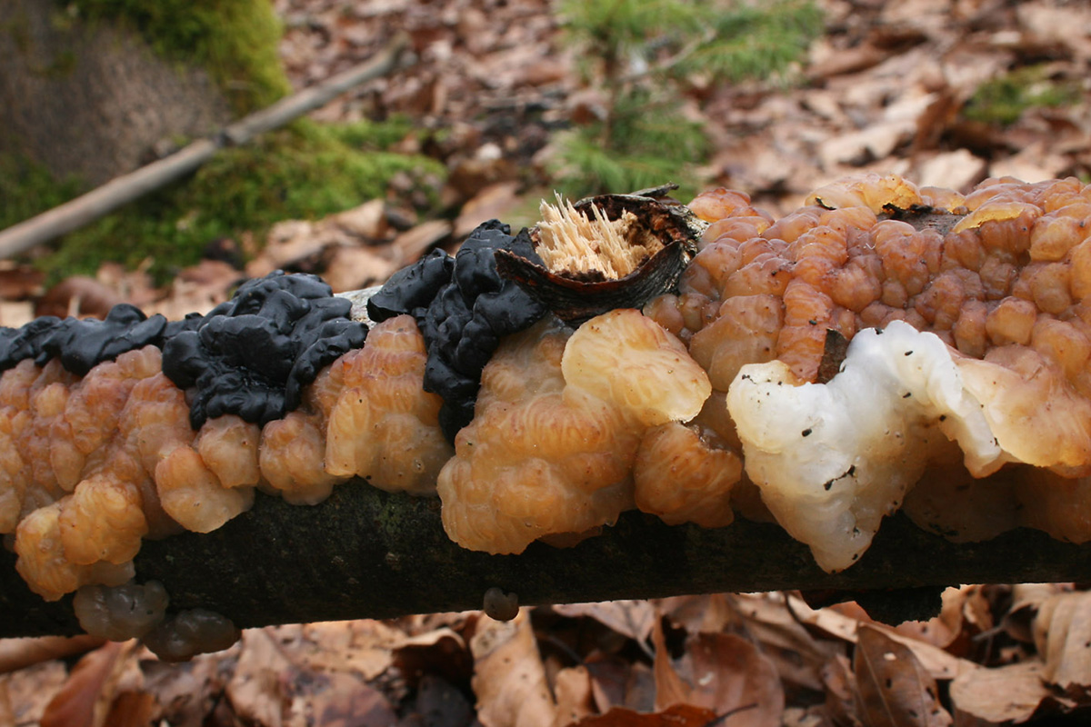 Anbei ein Fund von mir auf Linde: Exidia nigricans mit Exidia cartilaginea