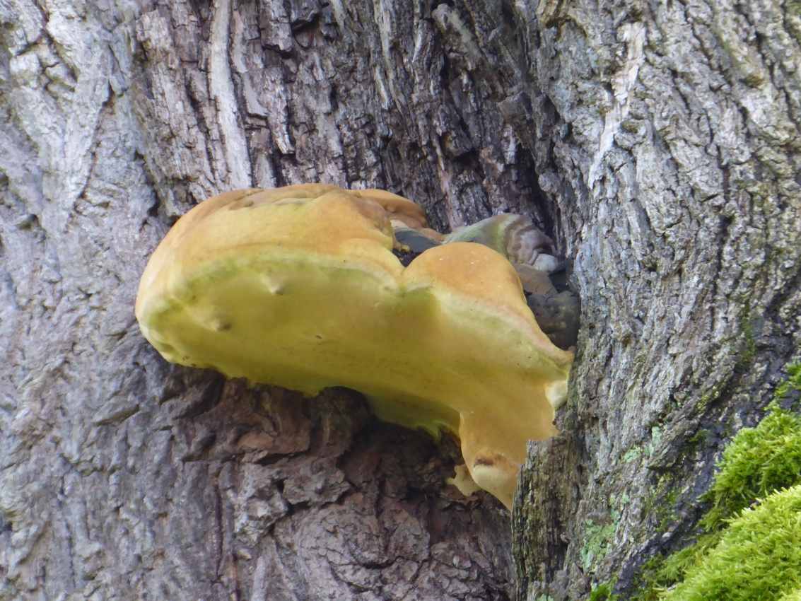 Kann dies Ganoderma pfeifferi sein? Gewachsen an altem Spitzahorn in für mich unerreichbarer Höhe, erlitt er eine Wunde, die sein Inneres zeigte. Nach einem knappen Jahr war der Pilz wieder schön, aber der Baum nur noch eine Ruine.