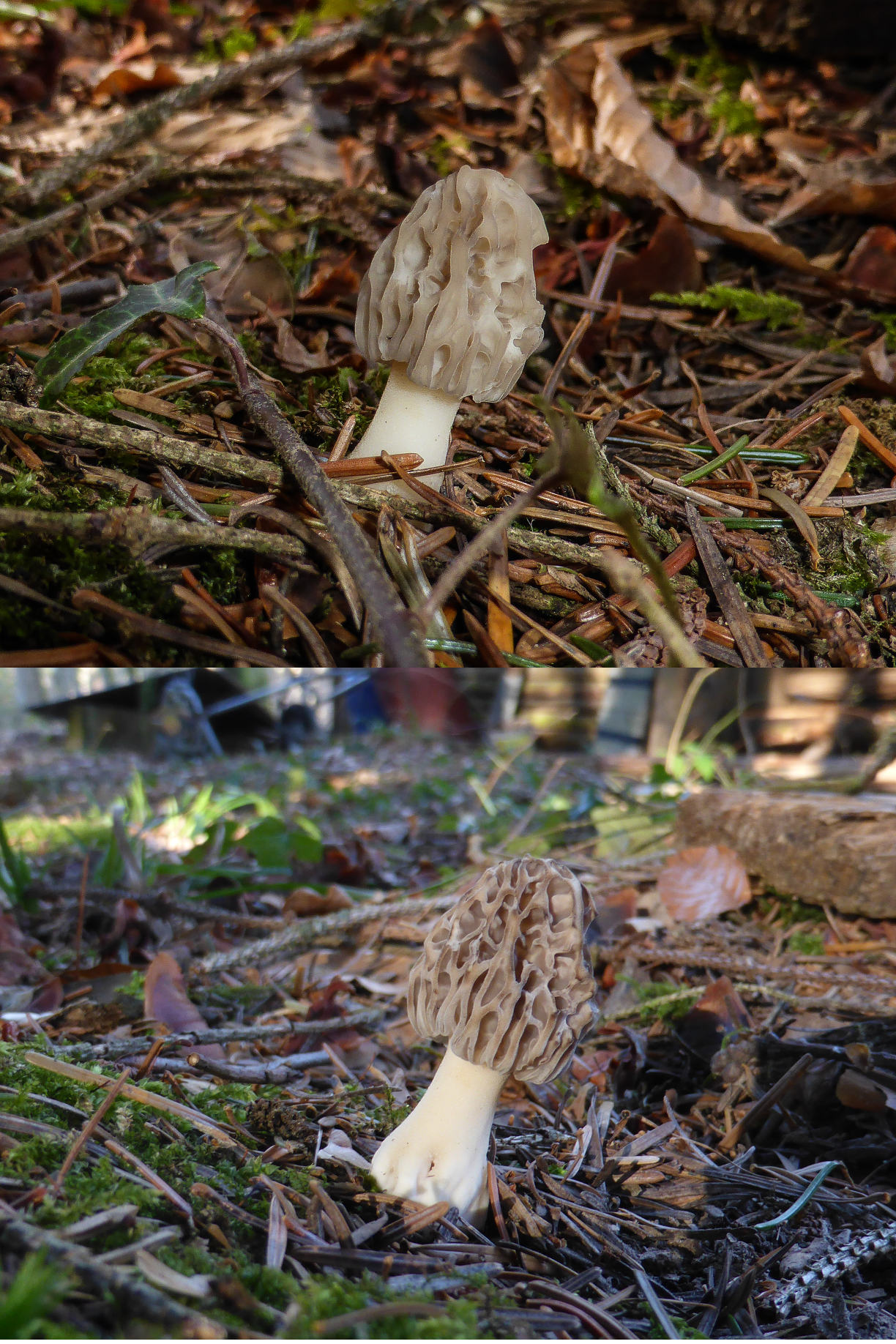 Hallo Pilzfans, Zuerst einmal - Gratulation an Gerald und seinen Morchelberg - wunderschön. Wie Ihr hier seht, in Wochenvergleich, der Nachzügler wächst und gedeiht. Wundere mich jedes Jahr, daß das Plätzchen immer unberührt bleibt, obwohl gar nicht so versteckt. Betreffend Vegetation - Weissdorn und Schlehe treiben schon, Hainbuche auch und Buschwindröschen gibt es auch schon. Esche ist als Baum fast verschwunden, da muss ich am nahen Elsass nachsehen, da stehen noch ein paar.