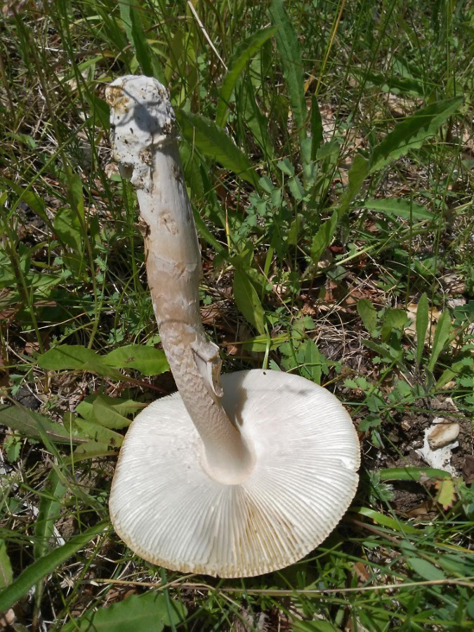 Hallo Thomas, ich habe mir gestattet, Dein letztes Foto mal kurz zu überarbeiten, siehe unten. Nun erkennt man, dass der Pilz eine lappige Scheide hat. Die freien Lamellen + genatterten Stiel hast Du ja schon selbst gesehen. Der fehlende Ring läßt mich Amanita lividopallescens vermuten, wobei ich diese Art selbst noch nicht gefunden habe. Aber wie Du ja weißt: in Foren lesen bildet ;-)