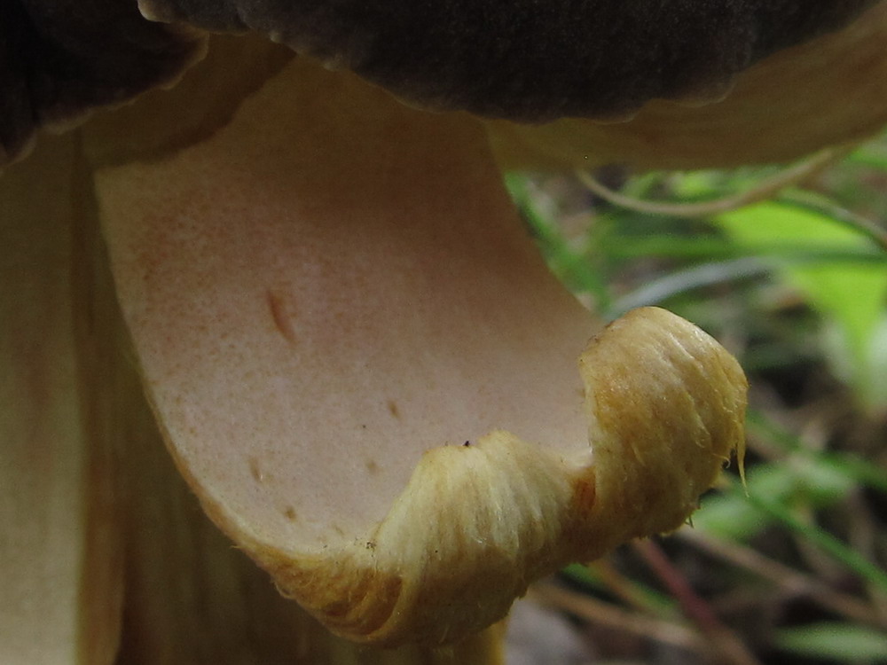 ich kenne den Standort seit vielen Jahren und er ist sehr Sonnenexponiert, aufgerissen Stiele finden sich häufig und sie Stieloberfläche zeigt dort meist kleine Pusteln oder Schuppen, eine Netzzeichnung habe ich dort noch nicht beobachtet. Eine Woche vorher gab es eine Handvoll Exemplare mit typischer olivgrüner Hutfarbe. Erst kam mir der Schwarzhütige Steinpilz in den Sinn der am selben Standort auch vorkommt wegen den braunen Tönen am Hut, aber der Hutdurchmesser (ca. 4-5 cm) und die andere Stieloberfläche machten es sehr schnell klar das ich hier keine typische Ziegenlippe vor mir hatte,