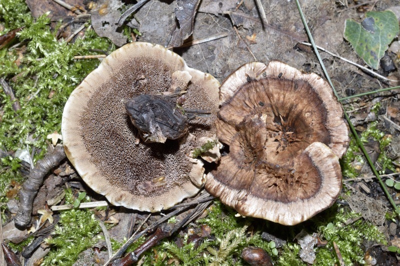 Hier die nächsten zwei, ebenfalls im Nadelwald (Kiefernschonung) Hut gezont,filzig, bräunlich in der Mitte +- grubig und abstehenden spitzen Stacheln, Rand hellbräunlich, Unterseite Stacheln hellbräunlich bis rost braun, Rand hellbraun, Stiel bräunlich und Geruch muffig erdig. Gruss,