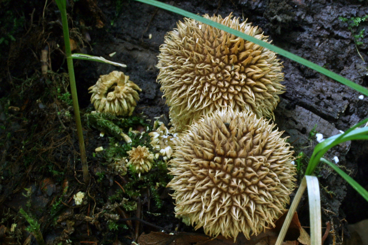: LG Sebastian _______________________________________________________________ Hi Sebastian, an Igel-Stäublinge glaub´ ich nicht wirklich, außerdem sind die jetzt schon durch, siehe Bild (vom 24.8.19 auf Holz!). Auf Dein Foto hin habe ich mir dieser Tage öfters ganz junge Birnen-Stäublinge angeschaut - ich denke, der ist es schon... nimm´ mal die Lupe mit in den Wald ;-) LG – Rika