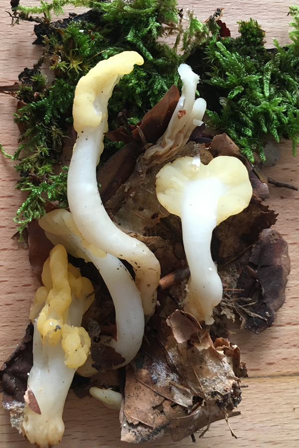 Hatte leider kein Fotoapparat dabei, sonst hätte ich sie stehen lassen. Habe ich noch nicht gefunden gehabt. Geruch unauffällig, Fruchtkörper weich, feucht auf (Buchen)Laub. (Und eine Clavulina rugosa?)