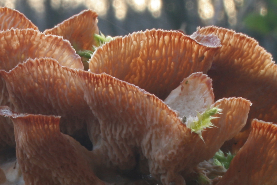Der Knackpunkt an diesem Rätsel ist: welches ist seine "richtige" Farbe? Du hast Dich für das Orange als Befall entschieden – durchaus eine plausible Annahme. Es ist aber genau umgekehrt, durch oft Einfrieren-Auftauen-Einfrieren... hat er seine Farbe nur noch im dicken Bereich und stammnah behalten. Jetzt weißt Du sicher, wer das ist ;-) Als Dankeschön vom gleichen Tag noch einen Ausschnitt eines anderen hübschen Holzpilzes (den Du auch sicher kennst) – so hat die tiefstehende Wintersonne fotografisch gesehen auch ihre Vorteile. Viele Grüße – Rika
