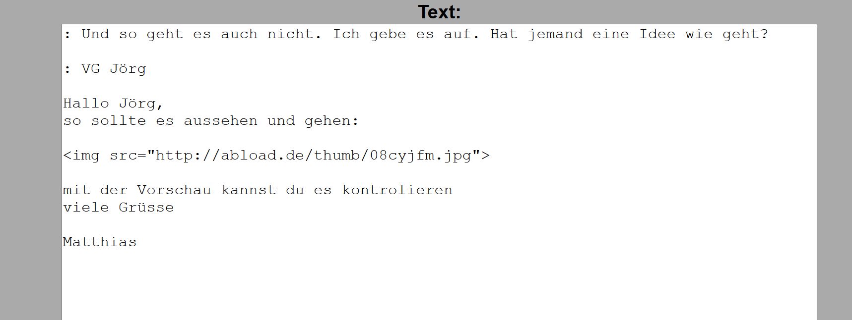 : Und so geht es auch nicht. Ich gebe es auf. Hat jemand eine Idee wie geht? : VG Jörg Hallo Jörg,