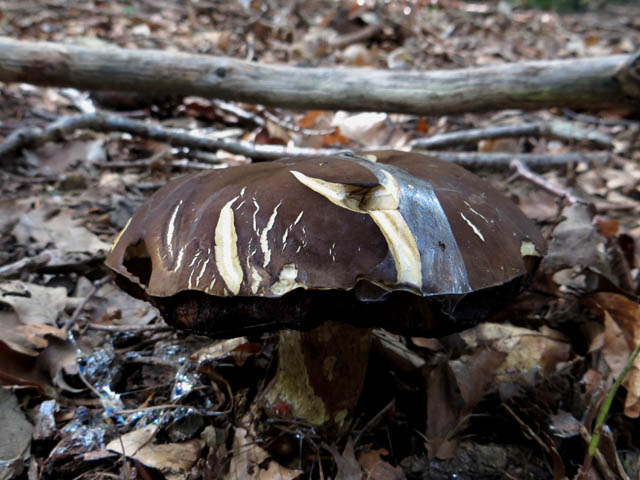 ... Steinpilz. Liebe Pilzfreunde, noch einige Meter entfernt, glaubte ich endlich meinen ersten Schwarzhütigen Steinpilz gefunden zu haben. Näher beäugt war dem dann aber nicht so. Die Hutoberseite war ja schön dunkelbraun, aber der Stiel wies an einigen Stellen rote Farbtöne auf. Ein Messer hatte ich leider nicht mit (ich war ja nur kurz mit dem Hund im Wald ...), also habe ich ein Stück Hut abgebrochen und an der Bruchstelle war ein zartes Blauen zu erkennen. Die Röhren waren schon fast schwarz.
