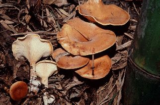 Da Pilze im Gegensatz zu Pflanzen nicht in der Lage sind, mit Hilfe des Sonnenlichts Nährstoffe selbst zu synthetisieren, sind sie wie Tiere auf die Aufnahme organischen Materials angewiesen. Viele tun dies in dem sie tote Pflanzen und Tiere (eine Art wächst ausschliesslich auf Leichen und hat angeblich schon zur Aufklärung eines Mordes beigetragen) zersetzen. Andere leben in Gemeinschaft mit Pflanzen oder auch Tieren zu beiderseitigem Vorteil (viele unserer Waldbäume und alle Orchideen sind auf das Zusammenleben mit Pilzen angewiesen; einige Insekten züchten Pilze um sich von ihnen zu ernähren wobei der Pilz von den Insekten gepflegt und verbreitet wird).Einige jedoch greifen das Leben ihrer Opfer direkt an. Ganze Fichtenschonungen wurden vom Hallimasch, dem Schrecken der Förster, vernichtet. Er macht sogar vor Kartoffeln nicht halt. Es gibt auch Pilze, die auf anderen Pilzen wachsen. Mit etwas Glück kann man einen Kartoffelbovisten finden, der vom Parasitischen Röhrling befallen ist. Aus dem runden Fruchtkörper des Bovists spriessen die Hüte des Angreifers, der mit dem bekannten Maronenröhrling verwandt ist.